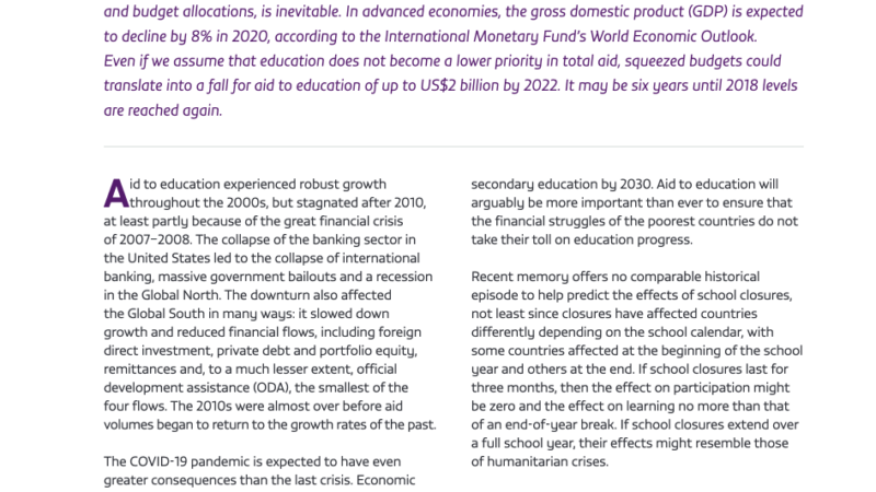 Dos tercios de los países más pobres recortan sus presupuestos de educación debido al COVID-19 By: Informe GEM