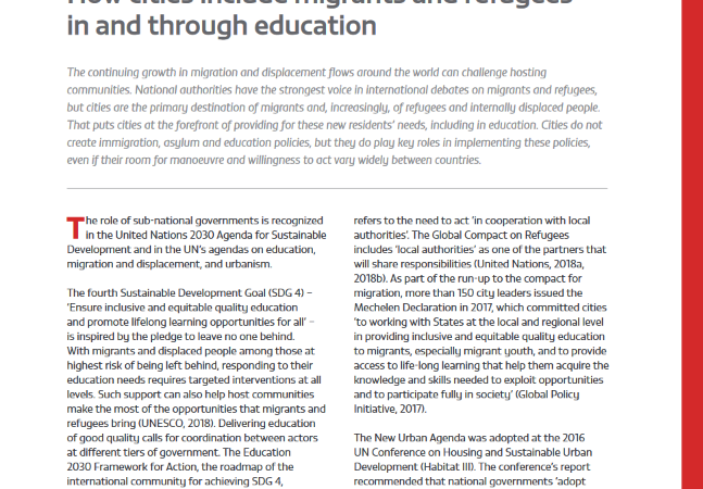 Las ciudades deben contribuir a que la educación se use para ayudar a que los migrantes y refugiados se sientan incluidos By: Informe GEM