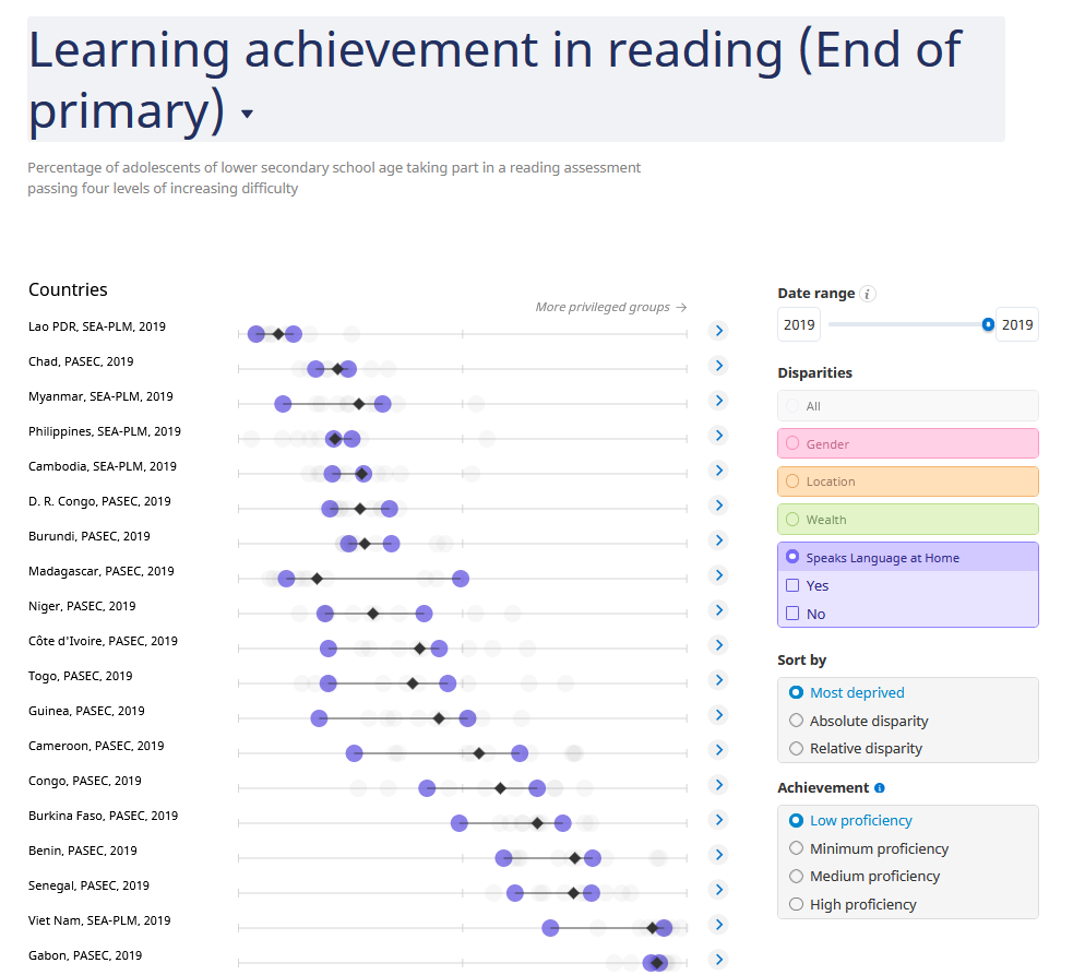 Como muestra la Base de Datos Mundial sobre la Desigualdad en la Educación (WIDE, por sus siglas en inglés), las y los niños a los que se les enseña en una lengua que hablan en casa tienen un 30% más de probabilidades de leer con comprensión al final de la enseñanza primaria que los que no hablan la lengua de instrucción.