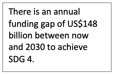 With less than five years remaining for the implementation of the 2030 Agenda for Sustainable Development, ineffective education financing has left a $97 billion annual financing gap for low- and lower-middle-income countries to achieve their national SDG 4 targets by 2030. Looking just at low-income countries, half of the cost of reaching their targets is unfunded.