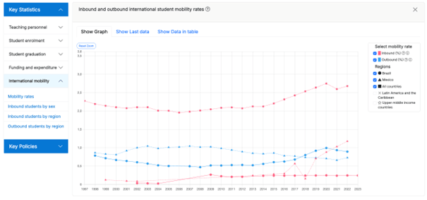 Caption: Compare statistical trends across countries and regions for enrolment, graduation, mobility, and more.