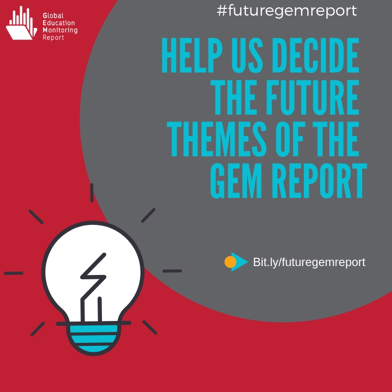 The Report team is interested to hear your views about what the theme of a future GEM Report should be.