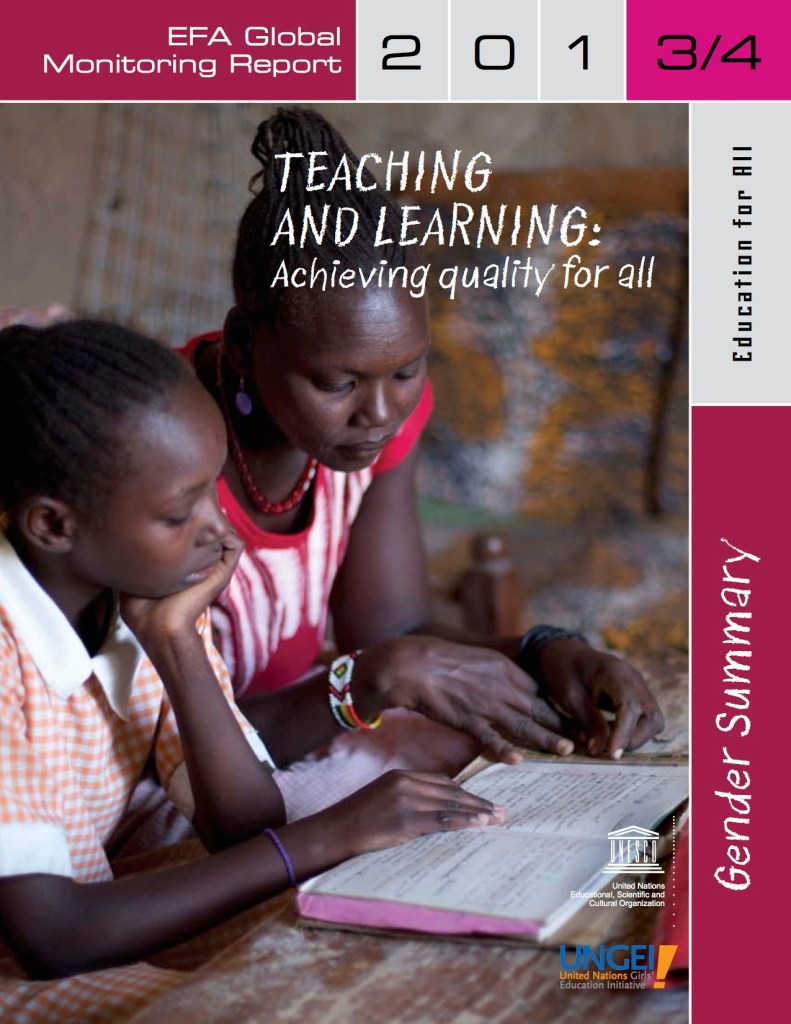 Those worrying findings of the 2013/4 EFA Global Monitoring Report are in the spotlight as we launch the Gender Summary of the report today, to mark International Women’s Day. The launch is taking place in New York in partnership with the United Nations Girls’ Education Initiative. Keynote speakers include Irina Bokova, director-general of UNESCO; Pauline Rose, director of the 2013/4 EFA Global Monitoring Report; Phumzile Mlambo-Ngcuka, executive director of UN Women; and Susan Hopgood, president of Education International.