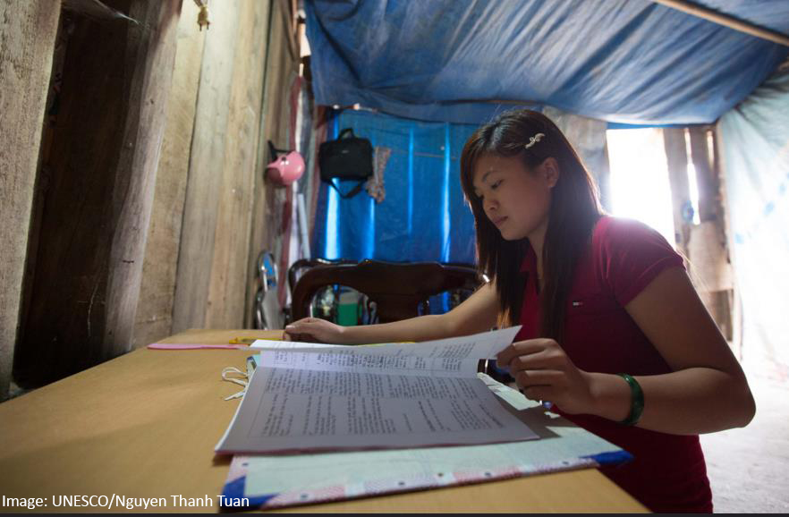 Teacher Nguyen Thi Thanh Hoan, Vietnam, “There are 13 ethnic students in my class. All Hmong girls. Some have a very difficult life. With language, vocabulary is always a challenge. Sometimes when you teach in Vietnamese they seem not to understand, but when you repeat in Hmong, you find out they do understand. So we try to speak Vietnamese in short, simple sentences. Sometimes we use visual tools, like images or real things, to help their understanding. At the same time, I try to learn Hmong from them. ”