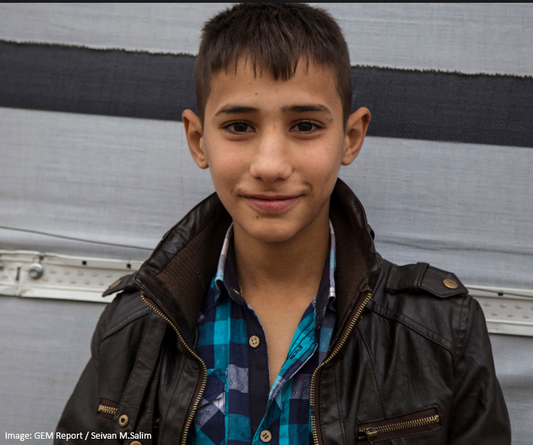 Adnan, 13 years, Syrian refugee living in Dohuk, northern Iraq: “I was in the 6th grade when we had to flee to Iraqi Kurdistan. After some months living in a camp we moved to Erbil, northern Iraq trying to get a better life. However in Erbil the (Sorani) dialect is spoken where as in northern Iraqi Kurdistan and the Syrian Kurds they speak the (Kermanji) dialect. This, along with the difference in the education system, has made it difficult for me to continue my education.”